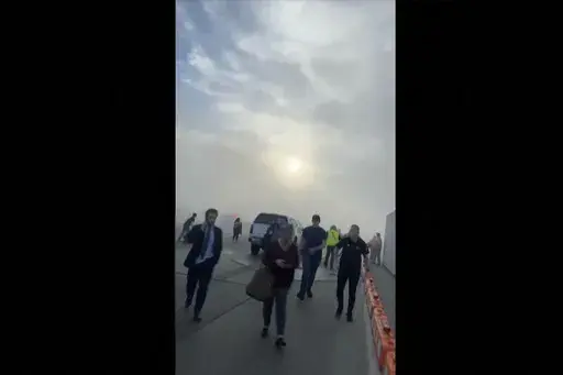 DENVER (AP) — A fire on an American Airlines plane after it diverted mid-flight and landed at Denver International Airport sent passengers fleeing onto a wing in a fraught evacuation amid billowing clouds of smoke. Airport officials said 12 people were taken to hospitals with minor injuries.
