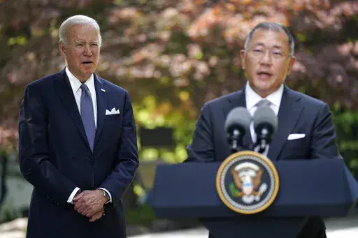 Biden's first appearance of the day was alongside Hyundai chairman Eusiun Chung to highlight the company's expanded investment in the United States, including $5.5 billion for an electric vehicle and battery factory in Georgia.