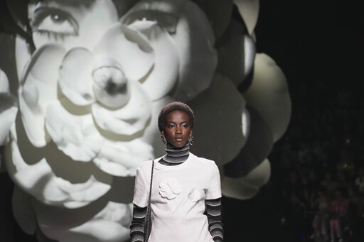 PARIS (AP) — Camellias that towered five meters (16 feet) high served as the ready-to-wear altarpiece for Chanel’s sparkling, bloom-inspired fall display.