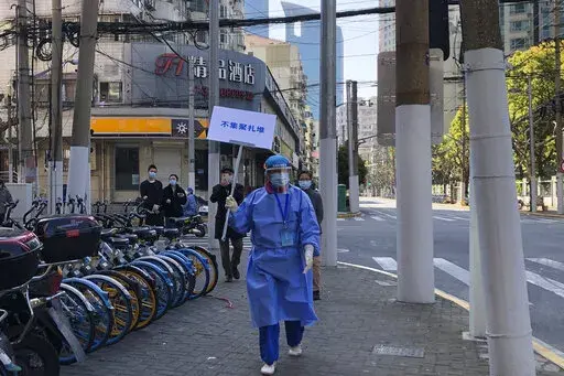 BEIJING (AP) — China has sent more than 10,000 health workers from around the country to Shanghai, including 2,000 from the military, as it struggles to stamp out a rapidly spreading outbreak in its largest city under its zero-COVID strategy.