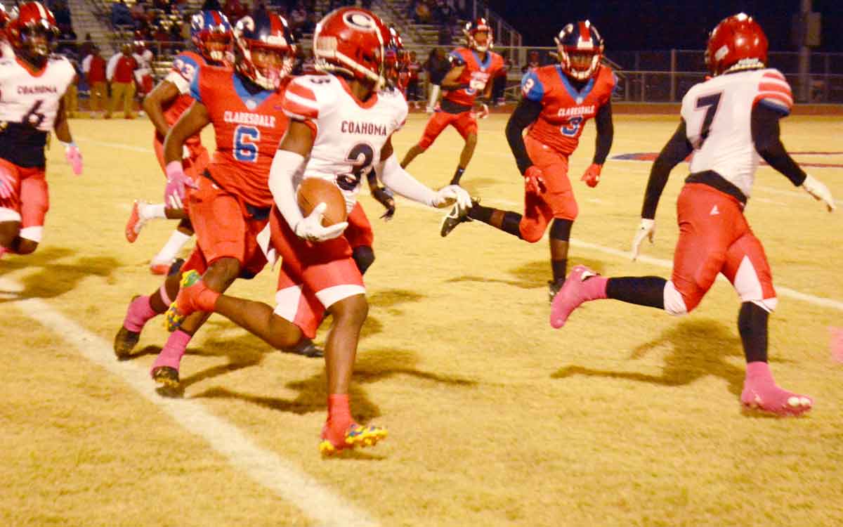 Coahoma County got on the scoreboard in the fourth when Jeramus Eagins scooped up a Clarksdale fumble and raced to the endzone.