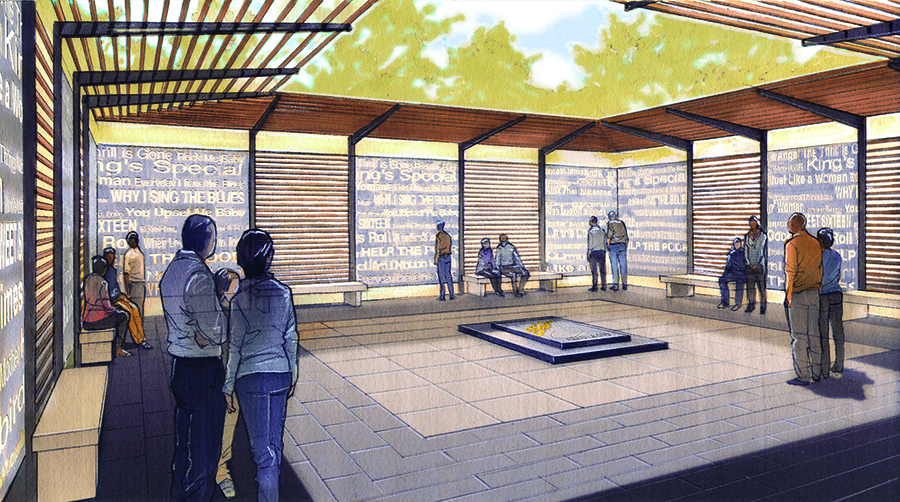 Along with the existing granite tablet, part of the newly designed Memorial Garden that is expected to draw visitors for photo opportunities is a life-size bronze of King holding his beloved Lucille.