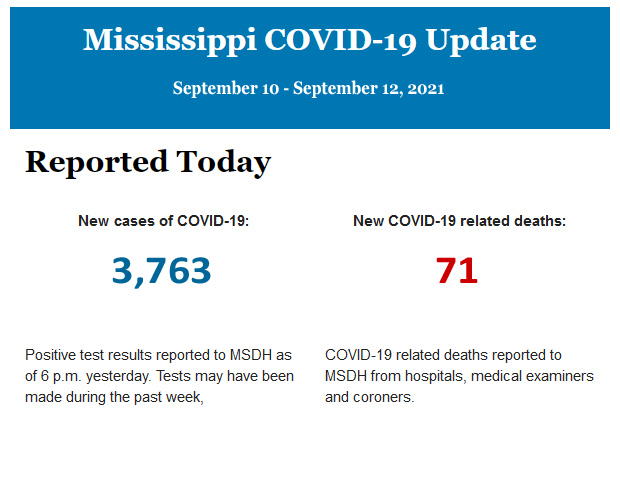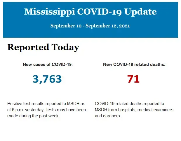 Listed below is the daily COVID-19 update for the state of Mississippi.