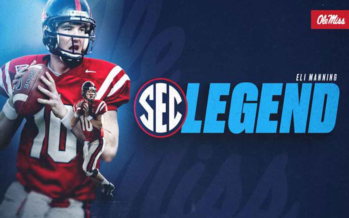 BIRMINGHAM, Ala. – Former Ole Miss quarterback and 2003 Maxwell Award winner Eli Manning is one of 14 members of the 2022 Southeastern Conference Football Legends class, the league office announced on Thursday.
