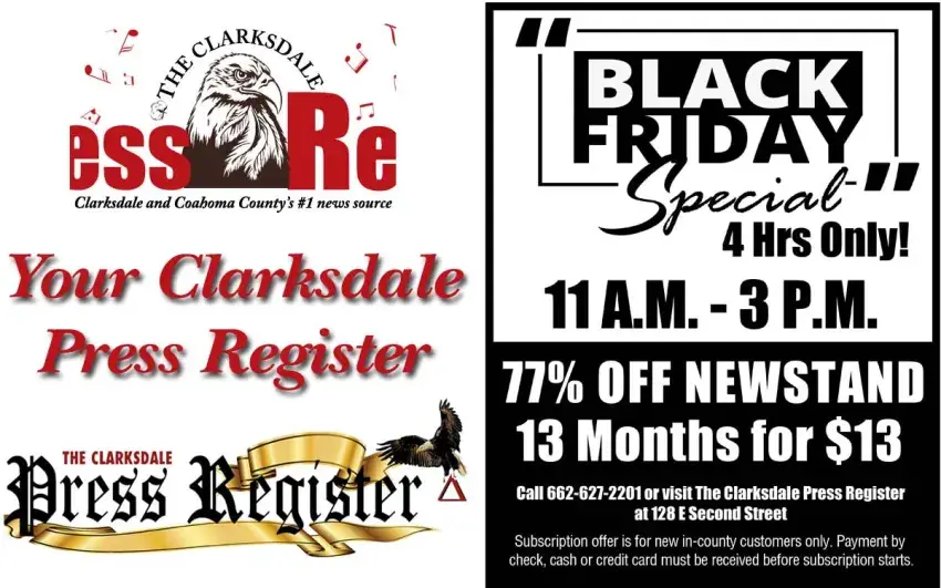 The Clarksdale Press Register will kickoff the Christmas Season with a special sale and offer local readers a very special Black Friday subscription rate.