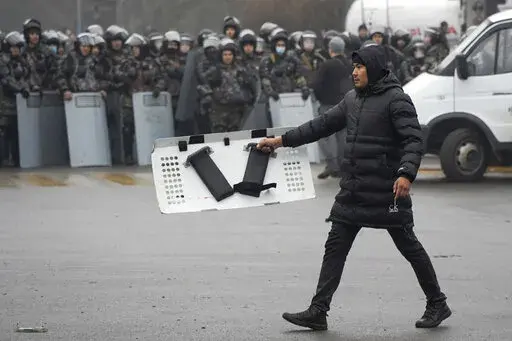 With government buildings coming under assault in several large cities, Tokayev appealed for help from the Collective Security Treaty Organization, a Moscow-led military alliance. He justified the appeal for external intervention by claiming the protesters were operating at the behest of international terrorist groups. He offered no details on what he meant by that.