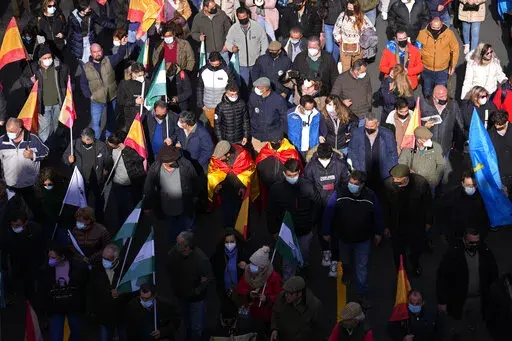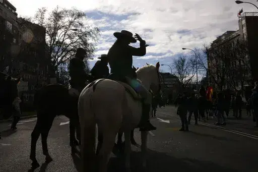 MADRID (AP) — Farmers, cattle-breeders, hunters and opposition supporters descended Sunday on the Spanish capital of Madrid to protest environmental and economic policies by Spain’s left-of-center government that they say are hurting rural communities.