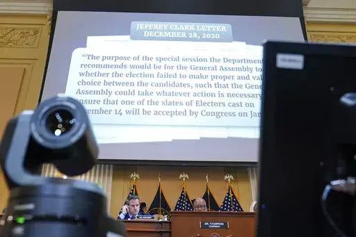 Clark's home was searched by federal agents shortly before a committee hearing in which he was the focus. Three other former Justice Department officials testified about an extraordinary Jan. 3, 2021, Oval Office meeting at which Trump contemplated naming Clark — who led the department’s civil division — as acting attorney general in place of Jeffrey Rosen, who resisted Trump’s efforts to involve the agency.