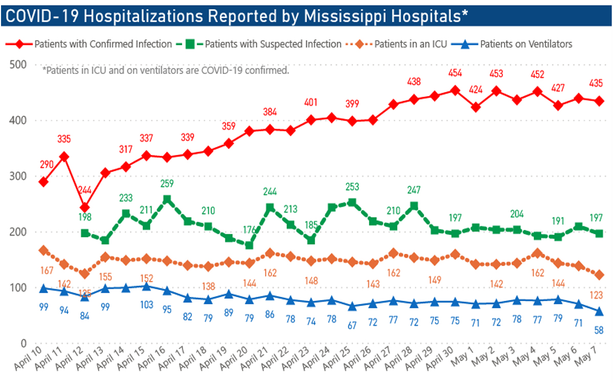 MSDH numbers also show that 77.6-percent of those identified with coronavirus are not being hospitalized and this has been a rising number. Most hospitals are not keeping patients unless the condition is life threatening.