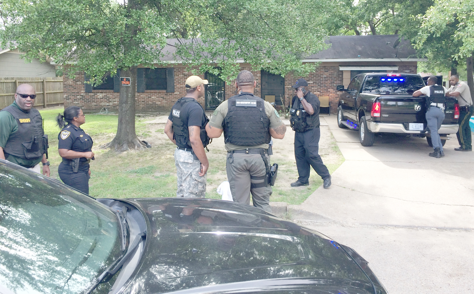 The Coahoma County Sheriff’s Department and the Clarksdale Police Department showed up in force on the west end of Stiles Street about 3 p.m. Wednesday with a team making entry on a brick home at the end of the street.
