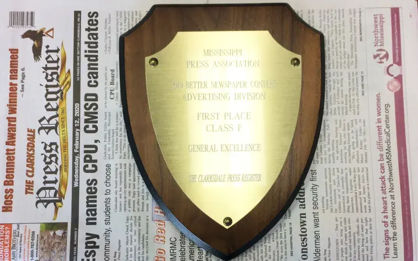 Your Clarksdale Press Register won 18 advertising awards including seven first place awards and the coveted General Excellence award this past weekend at the Mississippi Press Association Advertising Award contest in Jackson.