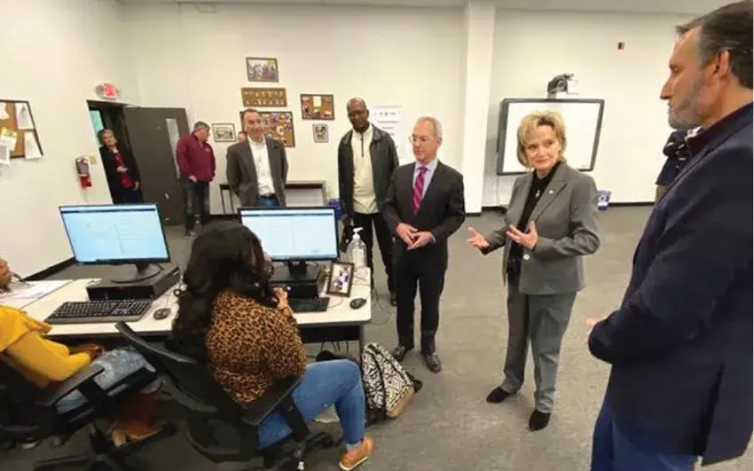 Senator Cindy Hyde-Smith was in Clarksdale last week and toured PeopleShores. She is shown with Coahoma County Supervisors Roosevelt Lee and Pat Davis, Chamber Executive Jon Levingston and PeopleShores Buiness Development manager Darryl Pieroni.