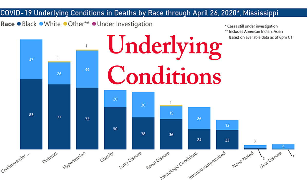 Data from the state also indicates the majority of those dying of COVID-19 had underlying conditions. Cardiovascular disease tops the list at 130 followed by hypertension at 118, diabetes at 104 and obesity at 70. Only five deaths have not had some type of underlying condition contribute to a fatality.