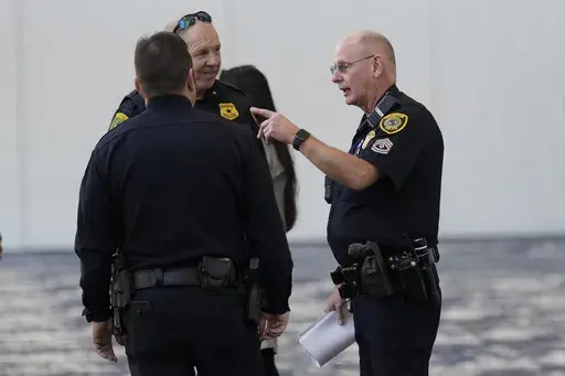 Officers from various law enforcement agencies, including Houston Police, walked the hallways during and between services Sunday.