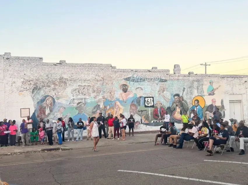 Fourth and North Main streets in Leland, Monday, Oct. 13, 2025, where a shooting resulted in multiple fatalities during a homecoming celebration days earlier. Credit: Vickie D. King/Mississippi Today
