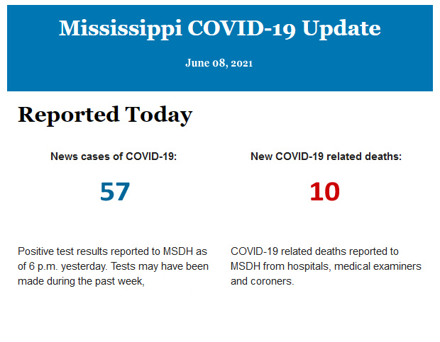 Listed below is the daily COVID-19 update for the state of Mississippi.