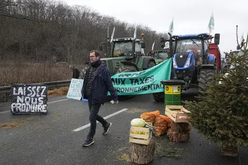 “We don’t want to hear words of love. What we want is proof of love," said Thierry Desforges, a farm union member at road blockade of the A6 highway in Chilly-Mazarin, south of Paris.