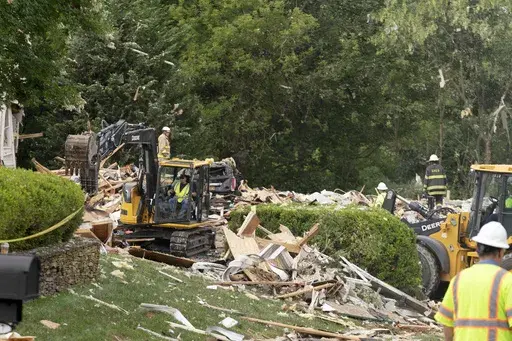 A photo posted by county officials showed several firefighters around the rubble of the home with another damaged home in the background. Charred pieces of wood were heaped on the property, and insulation and splintered wood spilled out into the street. Small pieces of debris hung from nearby trees. Later in the morning, emergency workers were seen using heavy equipment to search through the rubble.