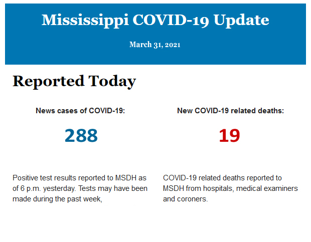 Listed below is the daily COVID-19 update for the state of Mississippi.