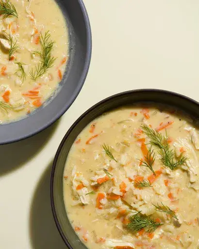 To prevent the eggs from curdling, keep these tips in mind: Temper the eggs first by slowly adding a small amount of the hot broth to the bowl before whisking the mixture into the pan. And after adding the mixture, don’t let the soup reach a boil or even a simmer. Season to taste with salt and pepper and serve with fresh herbs, such as dill or chives.