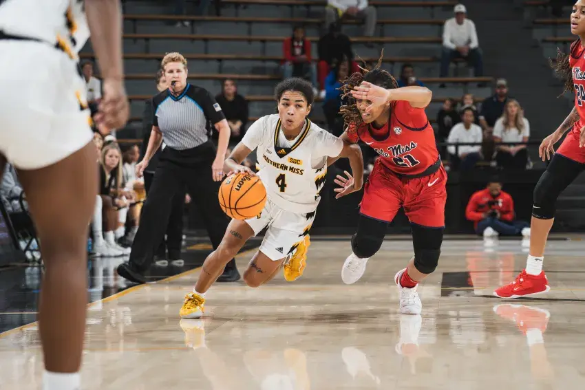Southern Miss turned up its defense late in the third quarter, overcame a double-digit deficit and held off Ole Miss in the final seconds for a dramatic 61-59 victory in women’s college basketball action Saturday afternoon at Reed Green Coliseum.