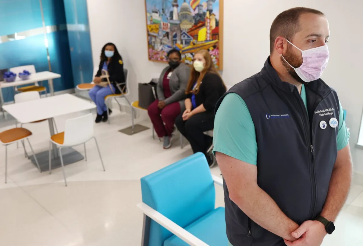 Gordon Gartrell, registered nurse and nurse manager talks about University of Mississippi Medical Center’s walk-up nursing and respiratory therapy job interviews, at UMMC’s Kathy and Joe Sanderson Tower in Jackson, Miss., Monday, May 16, 2022. Credit: Eric Shelton/Mississippi Today