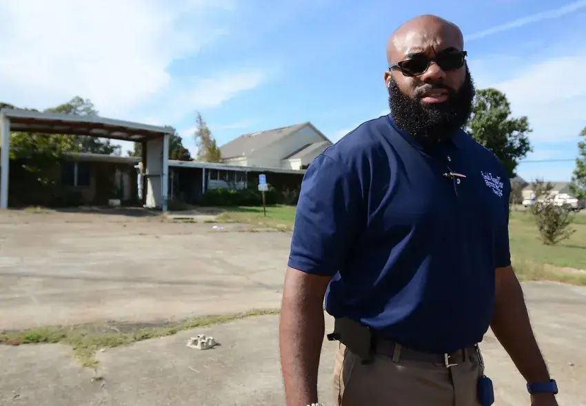 Byron Stribling of Belzoni, at the former Humphreys County Memorial Hospital, Tuesday, October 27, 2021. Stribling lost his wife and unborn child to a medical emergency earlier this year in July. Humphreys County Memorial closed in 2013. Credit: Vickie D. King/Mississippi Today