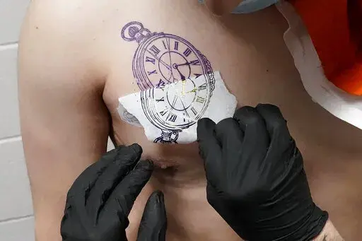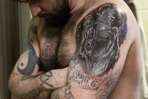 The first tattoo Eck had covered was one on his arm of the Latin Kings’ initials. Jail-sanctioned tattooist Tom Begley inked the image of a deer over it in a four-hour session in February. Covering all of Eck's gang tattoos will take months.