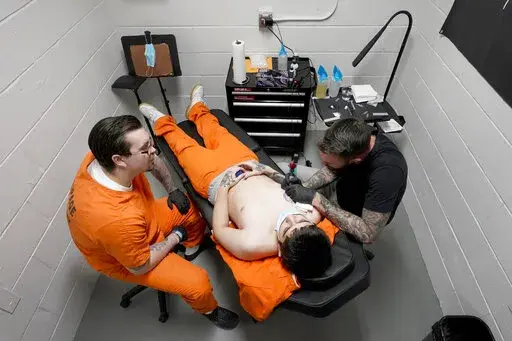 Begley and his wife, Meagan Begley, of the suburban Electric Tattoo Parlor, jumped at the chance to lend their skills. Inmates painted a mural on a wall in the jail's three-chaired tattoo studio. It says: “Hope, Purpose and Redemption.”