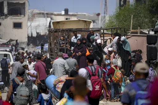 DEIR AL-BALAH, Gaza — Thousands of Palestinians collected their belongings and once again began evacuating part of the area of the Gaza Strip designated by the Israeli military as a humanitarian zone.