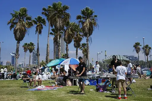 TEL AVIV, Israel (AP) — The grills were fired up, the blankets were spread across the grass, the smoke was pungent from sizzling slabs of meat. As in previous years, Israelis marked Independence Day with barbecues in parks across the country. Usually, parties crush so close that not even a tuft of grass is visible between the picnic blankets as Hebrew techno music reverberates through the trees from dueling speakers.