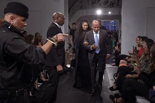 NEW YORK (AP) — With Janet Jackson resplendent in a black trouser suit on his front row and humongous hats on many of his models, Christian Siriano opened New York Fashion Week at the former townhouse of Elizabeth Taylor, rolling out sexy, slinky looks Wednesday to go with his trademark ballgowns.