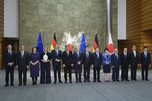 Scholz brought six of the 17 Cabinet members for talks with Japanese counterparts, including economy, finance, foreign, interior, transport and defense ministers. They discussed deepening economic and national security cooperation in the Indo-Pacific region, as well as China’s assertiveness in pressing its maritime territorial claims and its closer ties with Russia.