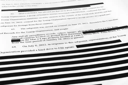WASHINGTON (AP) — A federal judge Tuesday unsealed additional portions of an FBI affidavit laying out the basis for a search of former President Donald Trump's Florida home, showing that agents earlier obtained a hard drive after issuing a subpoena for surveillance footage recorded inside Mar-a-Lago.