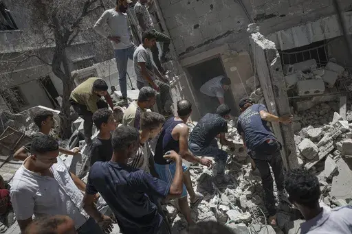 The group said a second strike hit the Asmaa school in Shati, a built-up refugee camp dating back to the 1948 war, killing at least 11 people, including five women and two children. The third strike hit a family house in the Shijaiyah neighborhood, killing two women, the civil defense said.