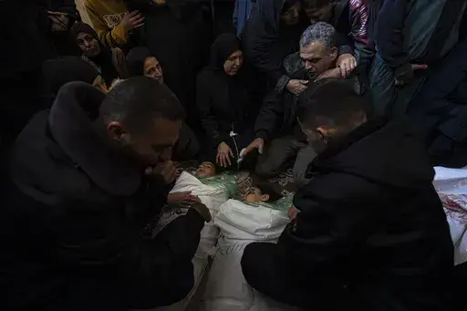RAFAH, Gaza Strip — At least six people were killed in an apparent Israeli airstrike on a home in the southern Gaza city of Rafah overnight. Officials at the local morgue say the strike occurred late Thursday, just before midnight.