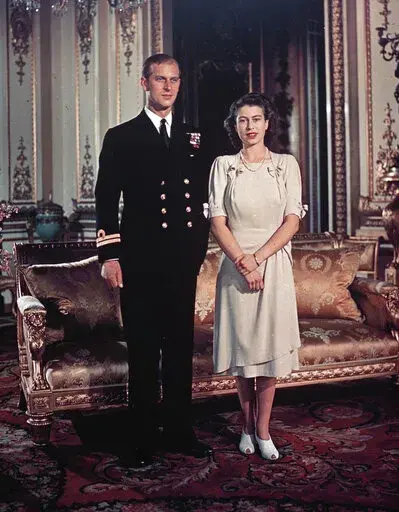The queen was, and remains, a practical dresser when necessary, but also glamorous in sparkly gowns when the moment beckoned. And she often went short sleeved or with no sleeves at all, something that doesn't happen today. She stood for photos with Prince Philip in a simple, light-colored dress with sleeves above the elbow and peekaboo low heels on her size 4 (6 U.S.) feet shortly before their wedding in 1947.