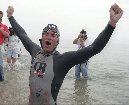 GRAND HAVEN, Mich. (AP) — The Shark is back in the water, trying to repeat his 1998 feat of swimming across Lake Michigan.