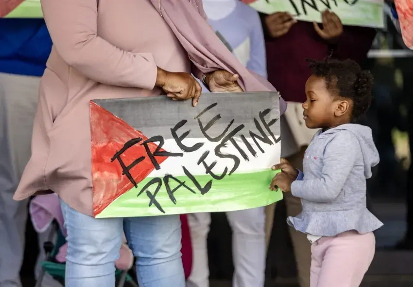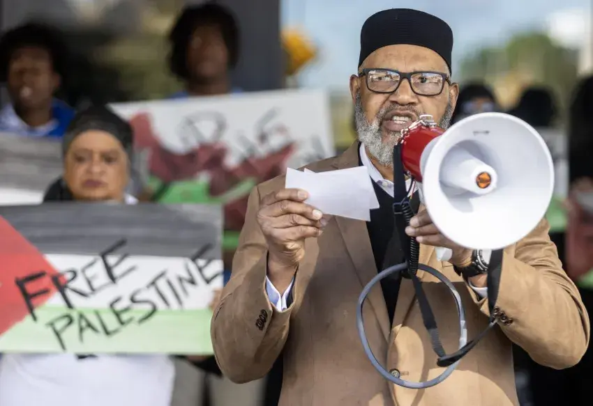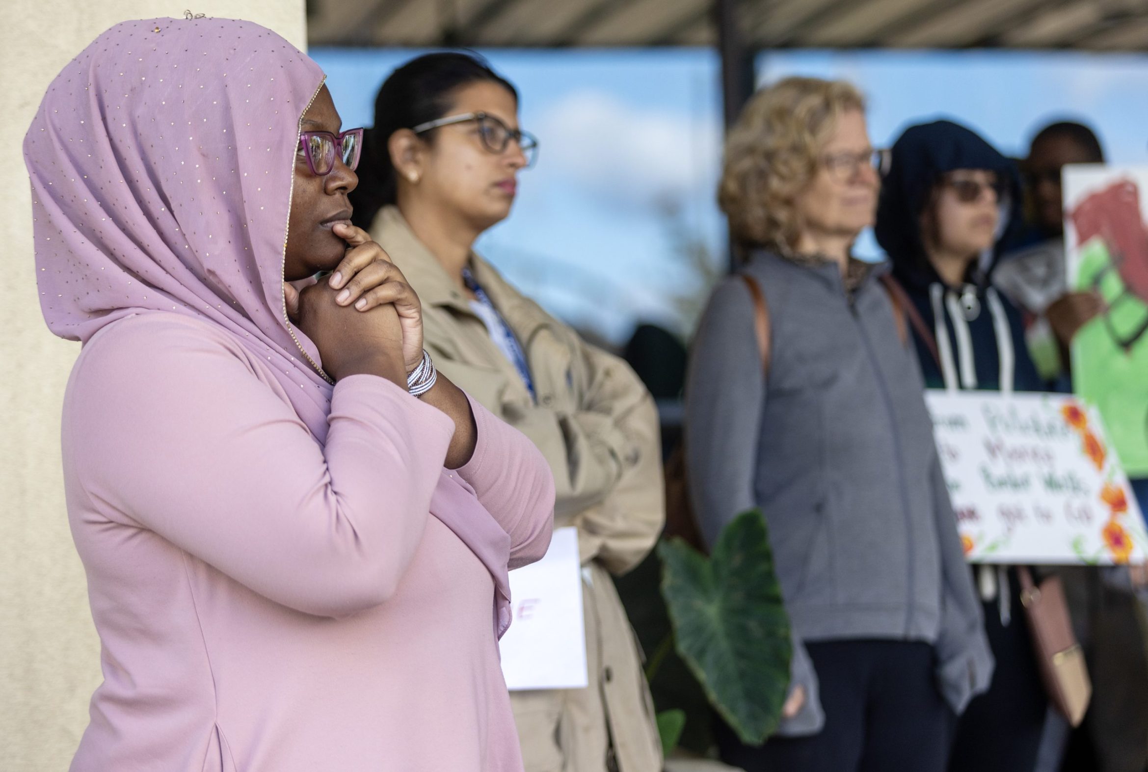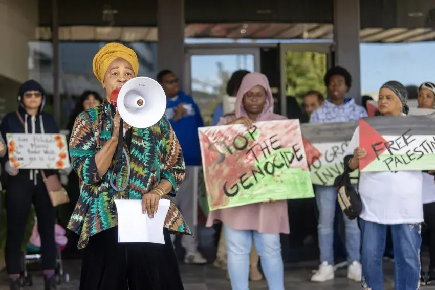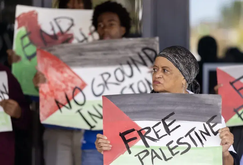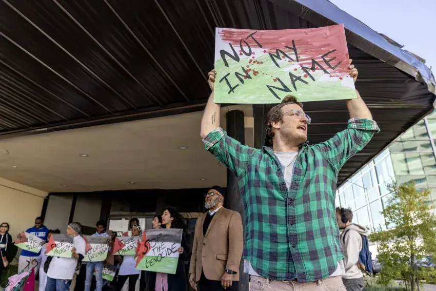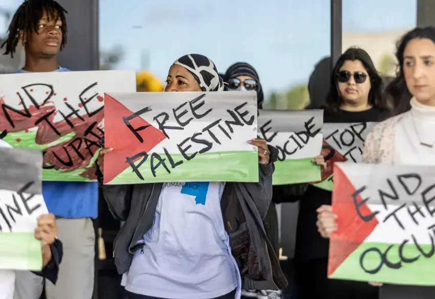 About 40 protesters gathered Monday, Oct. 16, at the International Museum of Muslim Culture in Jackson in protest of the Israeli–Palestinian conflict.