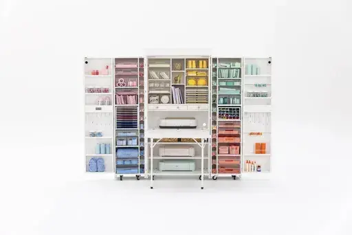 Got a crafter? Solve her storage crisis with the Dreambox. The rolling storage closet is full of adjustable shelving, rods, hooks and boxes. And, to reiterate, it's on wheels so can be stashed when not unfurled. There's lighting built in, along with an adjustable table, with options to add two additional side tables. Comes in two designs in white. Lots of other add-ons are available, like a white magnetic board that can be used to stick metal cutting dies onto. Making dreams come true sometimes doesn't come cheap. The base cost is around $2,500.