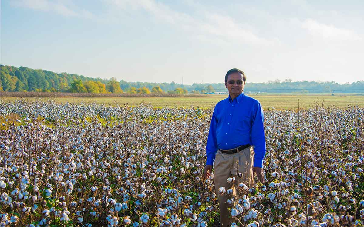 K. Raja Reddy, MSU Department of Plant and Soil Sciences research professor, working with Sahila Beegum, USDA Adaptive Cropping System Laboratory agricultural engineer in Beltsville, Maryland, developed a new cotton quality module that works with GOSSYM, a computer application that simulates the processes affecting cotton plant growth and yield. The acronym GOSSYM is derived from the scientific name of cotton, Gossypium. The application simulates cotton growth given selected weather, soil and management strategies. From there, it can predict crop growth, yield and now fiber quality.