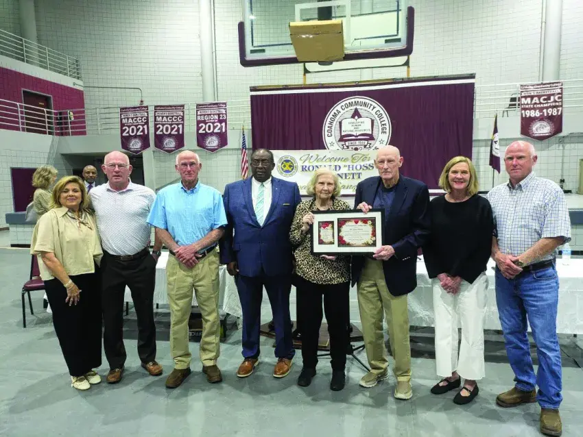 Coahoma County High School senior Calvin Hall III, second from right, is the Ronald ‘Hoss’ Bennett award winner. Also pictured are Donald Green of the Clarksdale Exchange Club; Hall’s father, Calvin Hall II, second from left; Hall’s mother, Yuvonne Wade, center; and Ronald ‘Hoss’ Bennett, whom the award is named after, right.