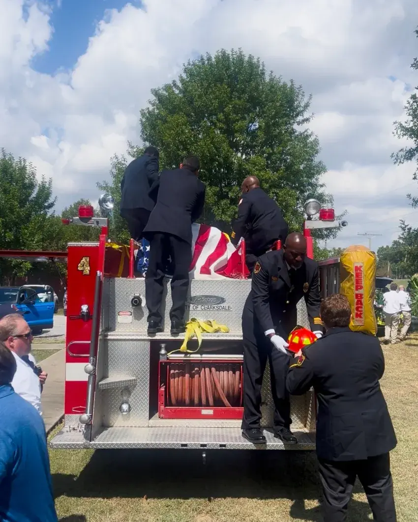 On Tuesday, the City of Clarksdale honored the life and service of Clarksdale Firefighter Eddie Bright. Draped in the American flag, Eddie’s casket made its final journey aboard Engine 4. Surrounded by his brothers in service, he was carried with the same dignity and strength that he showed throughout his life. In the final moments before Eddie's last ride, Clarksdale Fire Chief Charles Lane handed down his helmet, a symbol of a job well done and a life of service completed.