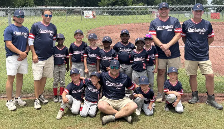 The 6U All-Stars competed in the Dizzy Dean North State Tournament at Batesville. Clarksdale put on quite a show winning both first two games 21-6. Clarksdale 6U continued play throughout the weekend enduring multiple lengthy rain and weather delays yet these young ball players never let the weather get to them and continued to play their hearts out through each game. In back from left are coaches Richard Lewis, Jason Lunceford, Hunter Fondren, Caleb Poe, and Shaun Redwine. In the middle row from left are All-Stars Tyler McBride, Ridge Cumney, Lawson Lunceford, Kaiden Peterson, Greyson Chestnut, Brenton Harris, and Powell Robertson. In the front row from left are All-Stars Jack Fondren, Colt Fondren, Brently Poe, and William Lewis.