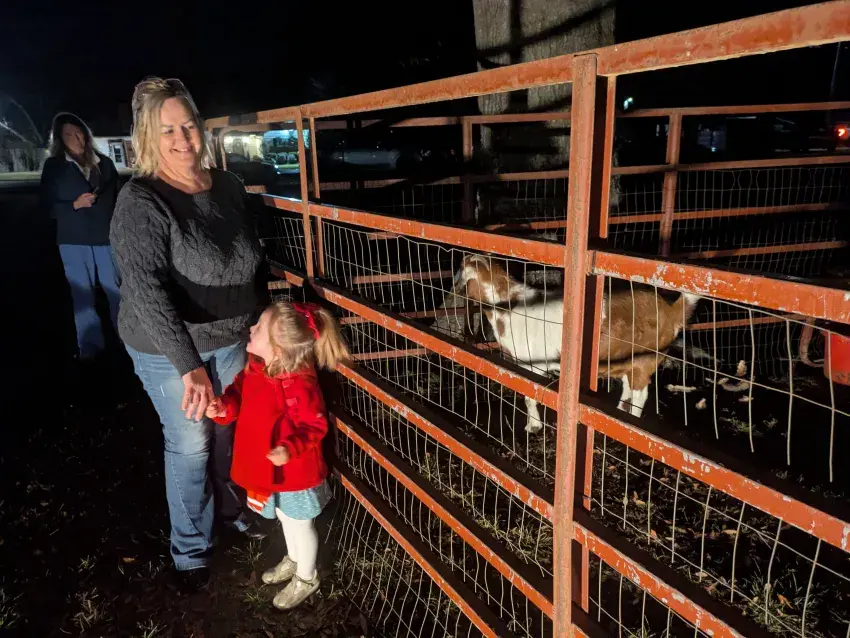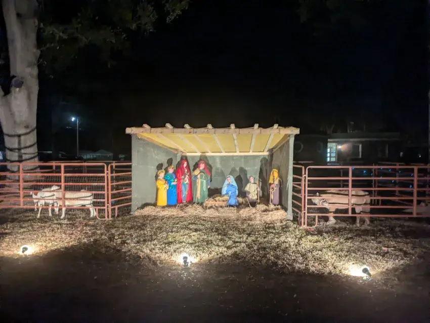 First Presbyterian Church and Presbyterian Day School presented The Live Nativity outside of the church on the night of Wednesday, Dec. 17, 2025. Students participate in the event. Cynthia Vanwick, age 2 years and 6 months, is with her grandmother Cornel Vanwick.