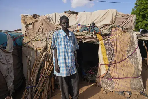 Salou Hassan and his family live in a two-room hut on the side of the road, along with some 140 people. The family sleeps on wooden slats close to the floor, with no electricity or running water, and they bathe in public showers.