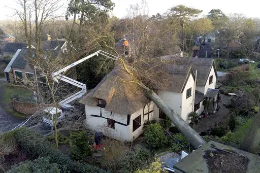 LONDON (AP) — Northern Europe has been battered by its third major storm in five days, with heavy rains and high winds killing at least two more people, disrupting travel and prompting hundreds of flood alerts across a region still recovering from last week’s hurricane-force winds.