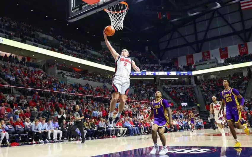 Updated each Tuesday and Friday, the latest bracketology from ESPN's Joe Lunardi has Ole Miss as a seven seed in the Midwest Region. They are projected to face 10-seed Baylor in Cleveland, Ohio, paired with two-seeded Michigan State vs. 15th-seeded Robert Morris. Lunardi's latest projections has 13 teams from the SEC earning a ticket to the 2025 NCAA Tournament, a number that would be the most for a single conference all time.