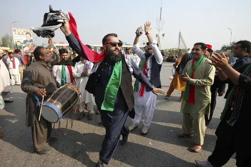 There was a festive mood in Peshawar, with PTI members dancing, drumming and holding up pictures of Khan as cars set off for Islamabad.
