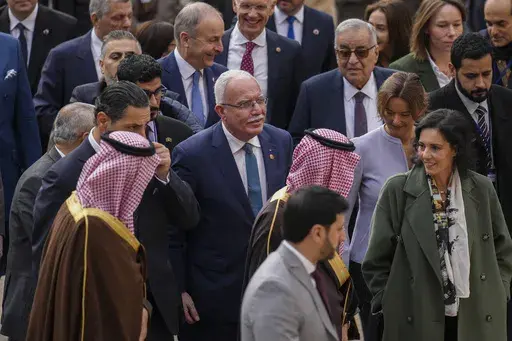 Jordan’s Safadi, who told The Associated Press on the eve of the event that he hoped the talks would help “bridge a gap” between Arab and European countries, urged the officials attending the meeting to back a two-state solution that would recognize a Palestinian state.